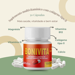 O Bonivita é muito mais que um multivitamínico: é um aliado diário para quem busca saúde, vitalidade e qualidade de vida. Com colágeno tipo II e vitaminas essenciais, ele oferece suporte completo para músculos, ossos e articulações, ajuda a reduzir dores e proporciona mais energia, imunidade e disposição, tornando seu dia a dia mais leve e saudável.